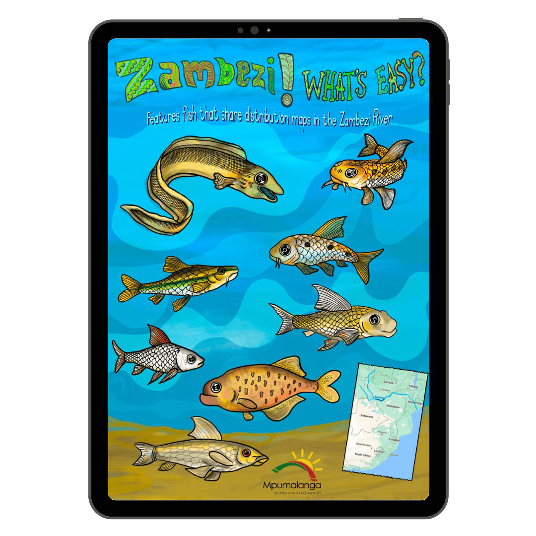 The Zambezi! What’s Easy? poster is a vibrant visual celebration of fish species found across the Upper Zambezi River system.
